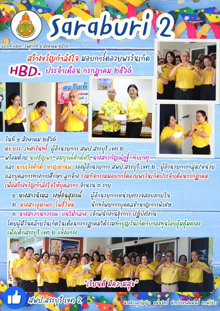 สพป.สระบุรี เขต ๒ เสริมสร้างวัฒนธรรมองค์กร สร้างขวัญกำลังใจ มอบการ์ดอวยพรวันเกิด ประจำเดือน กรกฎาคม ๒๕๖๘